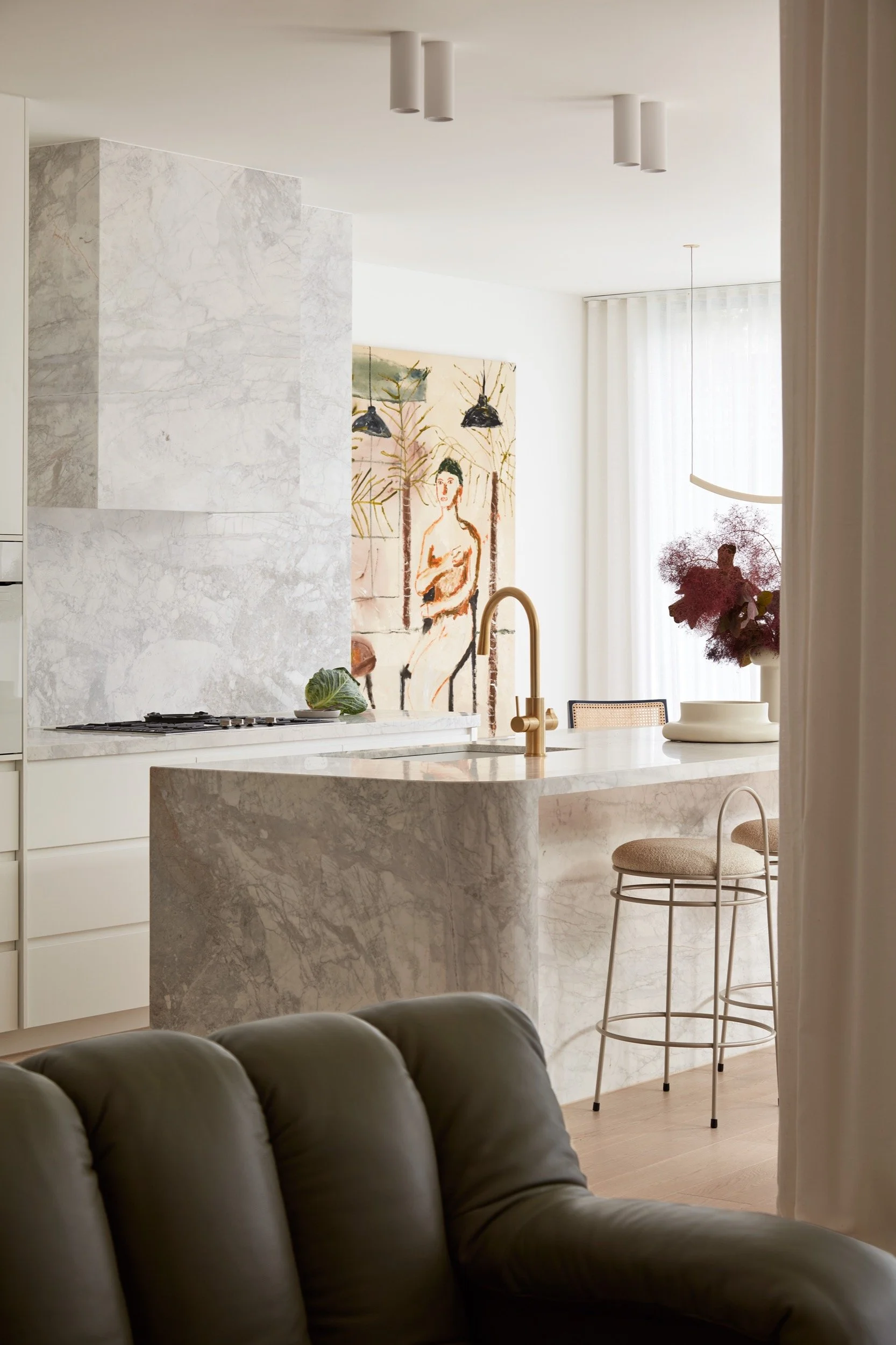 Bespoke joinery and meticulously hand selected natural stone form a harmonious backdrop, while the bespoke furnishings and curated decor elements underscore a commitment to exceptional craftsmanship.